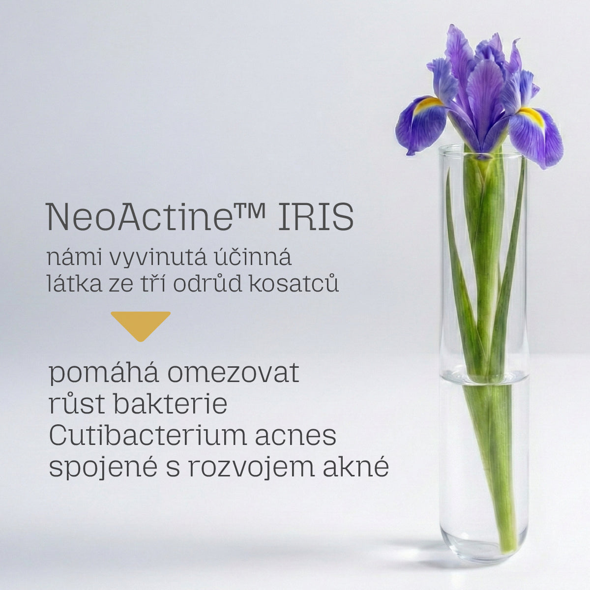 NeoActine IRIS, ein Originalwirkstoff aus drei Irisarten für zu Akne neigende Haut.
