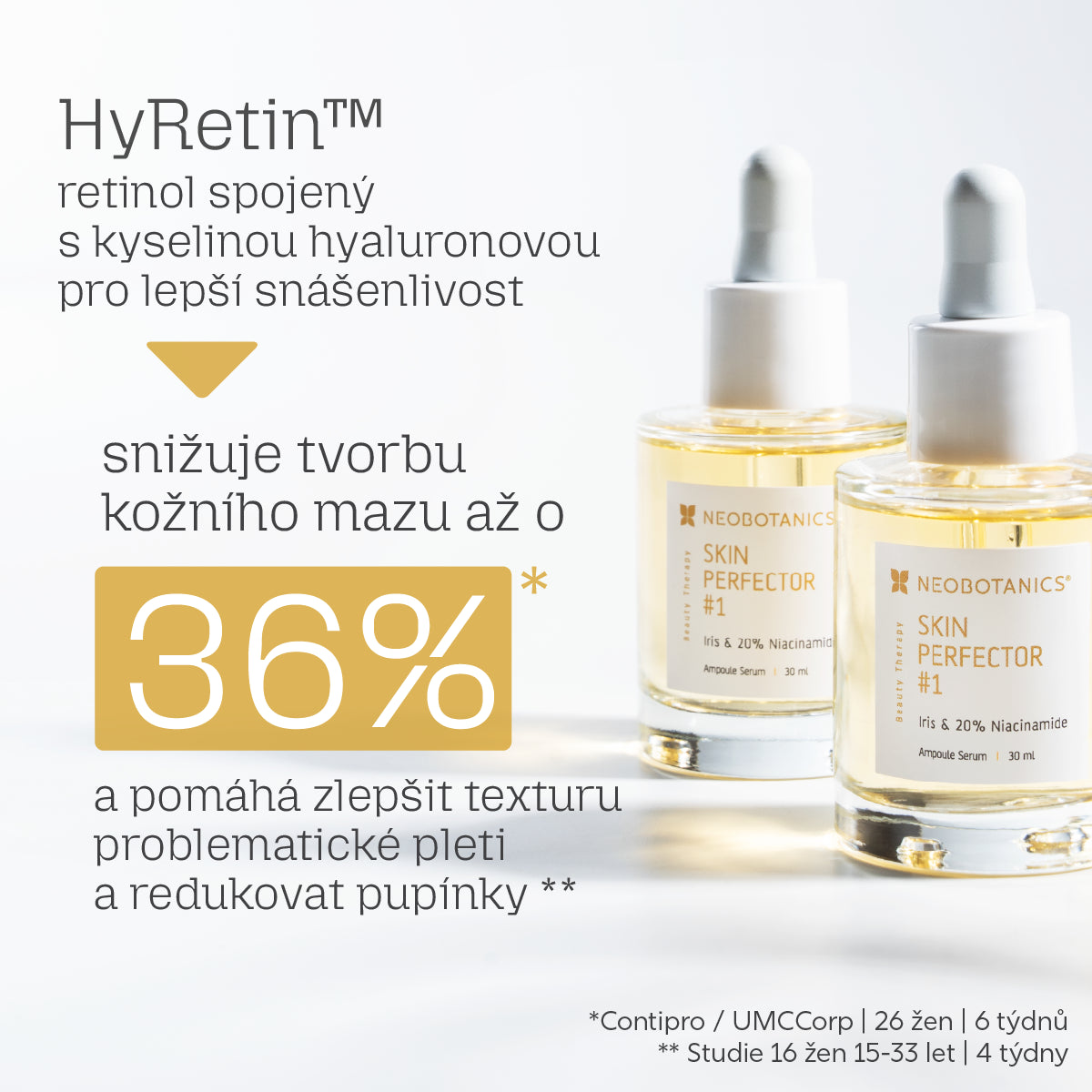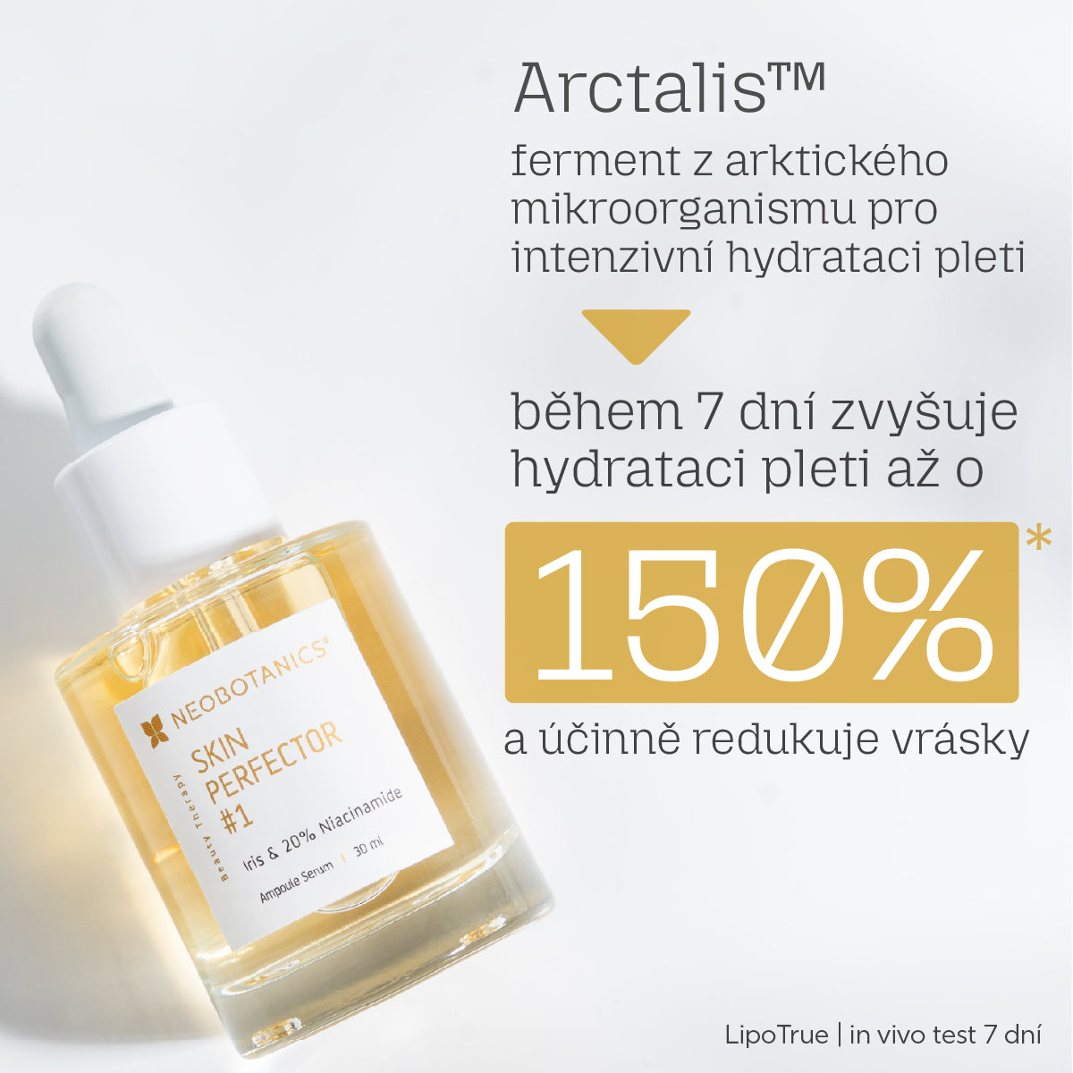 Spezielle Zusammensetzung entwickelt von Doc. Ing. Petr Kaštánek, Ph.D. , Direktor der BIOCEN-Labore und Gründer der Marke NEOBOTANICS ™ , kombiniert den wichtigsten natürlichen Inhaltsstoff – NeoActine ™ IRIS (Extrakt aus drei Iris-Sorten) mit weiteren Inhaltsstoffen: