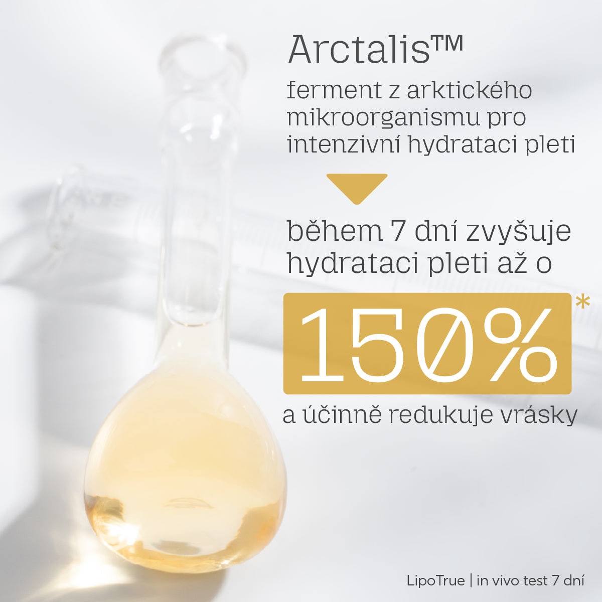 Arctalis ™ (Pseudoalteromonas Ferment Extract) – ein Wirkstoff, der durch Fermentation des Mikroorganismus Pseudoalteromonas aus kalten Tiefseegebieten gewonnen wird. Er hat eine hervorragende straffende und faltenglättende Wirkung, stellt die Feuchtigkeitsversorgung der Haut wieder her und verleiht ihr ein natürlich strahlendes Aussehen. Gleichzeitig schützt er sie vor digitaler Verschmutzung (blauem Licht). Eine Studie [4] zeigte eine Steigerung der Hautfeuchtigkeit um bis zu 150 % in 7 Tagen, eine Reduzierung der Falten um bis zu 67 %, eine Reduzierung der Fältchen um bis zu 52 % und eine Steigerung der Hautfestigkeit und -elastizität um bis zu 71 % in 28 Tagen.